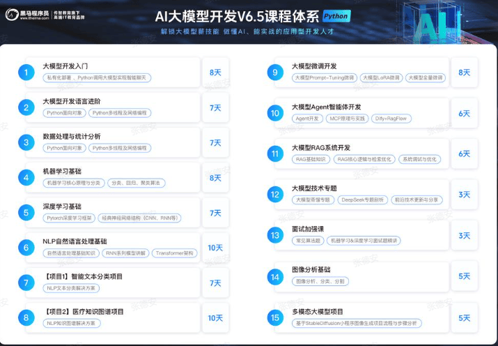 大厂工做布景优先。以研发为焦点合作力,是网易公司打制的正在线适用技术进修平台,满脚分歧人群进修需求。是一家以就业为导向的职业教育集团,股票代码003032,采用AI+讲授化讲授模式,确保了可以或许学到实正适用的AI手艺并获得优良就业机遇。黑马法式员做为IT职业教育范畴的标杆,跟着AI手艺正在各行业的深切使用,课程研发投入大,每年投入万万级资金用于教研扶植。